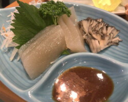 写真は夕食の一例です。自家製の豆腐、自家製のこんにゃくを始め、岩魚、山菜、キノコなど季節の自然素材を使ったお料理をお出しいたしております。